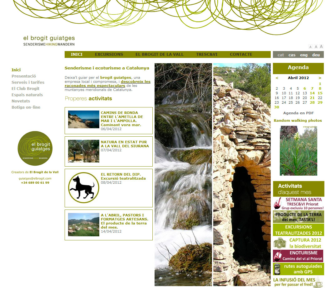 Página web dinámica PHP y MySQL desarrollada con Typolight. Se puede gestionar las páginas, notícias, banners, rutas, escapadas, vacaciones i autoguiados. Buscador de rutas, escapadas, vacaciones i autoguiados. Animaciones en Flash.